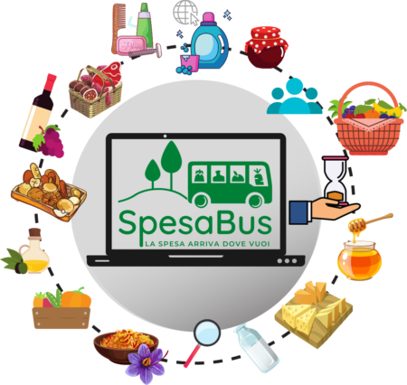 “Spesabus è un mercato locale online per consumatori consapevoli. Potrai fare online la tua spesa sostenibile da produttori e piccoli commercianti locali e ritirarla in negozio, velocemente senza fare file, oppure riceverla a domicilio o presso punti di ritiro che abbiamo chiamato fermate Spesabus.