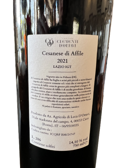 Bottiglia vino rosso cantina D’Ottavi/Clementi 2021 IGT