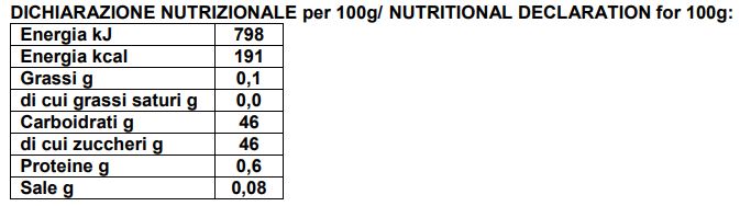 FRUTTA UTILIZZATA / FRUIT USED: 137 g di frutta per 100 g di prodotto finito / 137 g of fruit per 100 g of finished product.