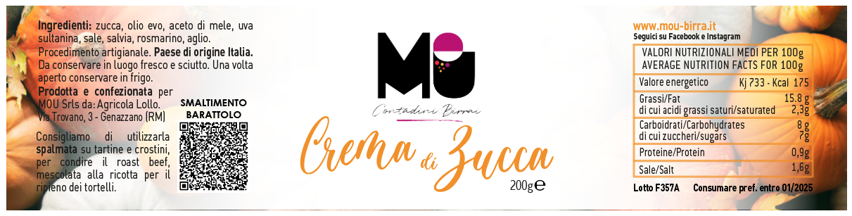 territorio. Dallo splendido colore arancio della polpa delle zucche mature, otteniamo questa buonissima crema di zucca marinata, come da antica ricetta tradizionale.