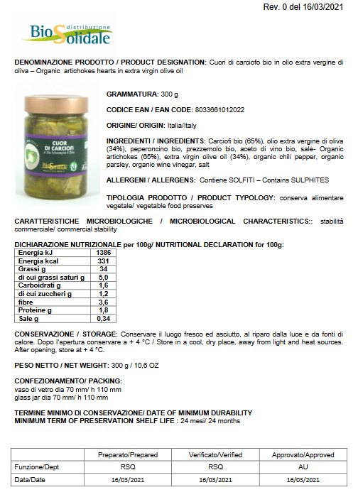 Prodotto realizzato con verdure dell’orto di BioSolidale e trasformate nel loro laboratorio artigianale seguendo le ricette della tradizione romana. Solo olio Extra Vergine di Oliva di alta qualità. Prodotto vegano. Certificato Biologico. Tutti gli ingredienti sono disponibili nella scheda “INFORMAZIONI AGGIUNTIVE”