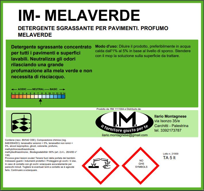 Detergente sgrassante concentrato per tutti i pavimenti e superfici lavabili. Neutralizza gli odori rilasciando una grande profumazione alla mela verde e non necessita di risciacquo.