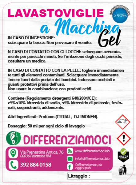 Il Prodotto alla spina Lavastoviglie a Macchina GEL è stato concepito per l’uso domestico dalle elevate prestazioni sgrassanti . Grazie alla sua forte azione sequestrante il prodotto mantiene inalterata la sua efficacia anche con le acque più dure. La sua formula gel è particolarmente adatta per il dosaggio in vaschetta.