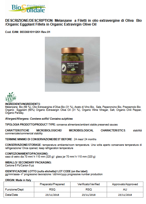 Prodotto realizzato con verdure dell’orto di BioSolidale e trasformate nel loro laboratorio artigianale seguendo le ricette della tradizione romana. Solo olio Extra Vergine di Oliva di alta qualità. Prodotto vegano. Certificato Biologico. Tutti gli ingredienti sono disponibili nella scheda “INFORMAZIONI AGGIUNTIVE”